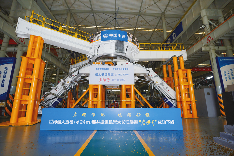 9月26日,由中铁隧道局、中铁工程装备集团联合研制的世界最大直径竖井掘进机——崇太长江隧道“启明号”掘进机在河南郑州下线。