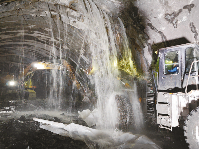 金阳隧道洞内通风难、温度高、水量大以及含有硫化氢毒性气体的环境给参建员工带来生理和心理上的双重挑战。员工每天靠饮用盐汽水、藿香正气液防止中暑,佩戴防毒口罩进行防护。工作服时常被汗水浸透,留下一道道汗渍。“这都不算什么,如果遇到涌水,全身都会被浇透,一天下来身上几乎就没干过。”回忆起施工过程,现场班组长李先友百感交集。面对严峻的富水挑战,项目部针对性地制定“超前探测、精准控水、科学支护”的施工策略。采用“TSP+雷达+瞬变电磁仪+超前钻探”四重探测手段,提前探明掌子面前方水文地质情况,精准把握涌水点与水量,为后续制定控水方案提供数据支撑。针对富水地层,在掌子面前方钻设注浆孔,注入特种水泥浆液形成“止水帷幕”,最大限度地从源头阻断地下水涌入;对于已渗入隧道的积水,通过“掌子面集水井+侧沟排水+中央排水管”三级排水系统,快速将积水排出洞外,确保施工面干燥整洁。同时,针对富水软弱围岩特性,通过高强度支护结构抵抗水压、防止围岩变形,为隧道施工筑牢“安全屏障”。