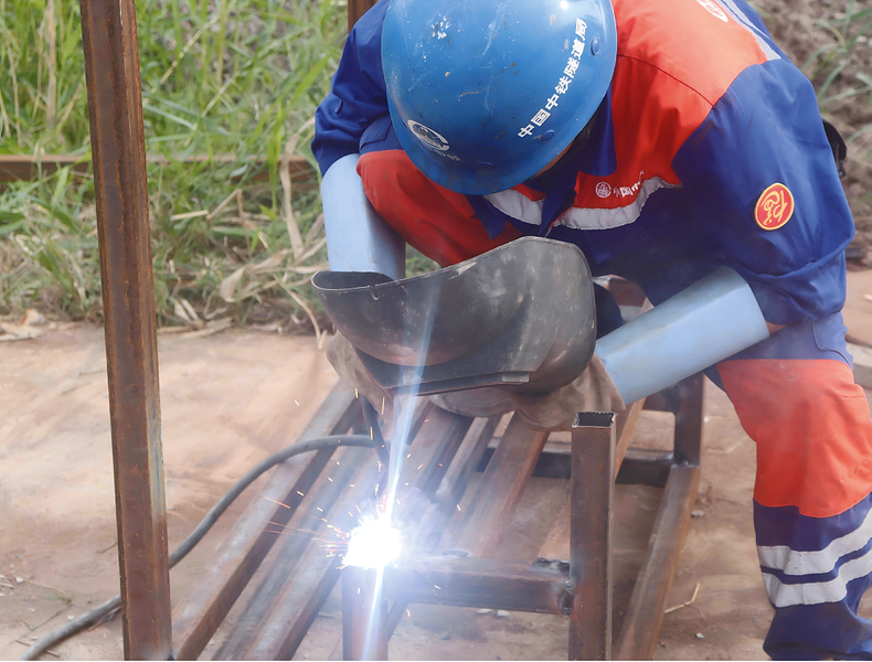 图③为隧道股份马鞍山湖北路过江通道项目部员工焊接施工所用楼梯。