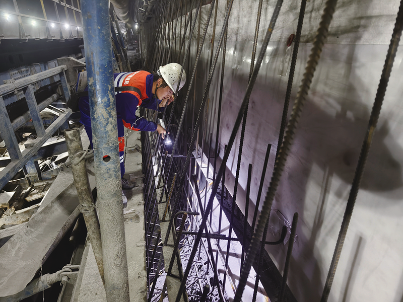 图④为二处高原铁路项目部员工魏鑫检查仰拱模板的定位安装质量。
