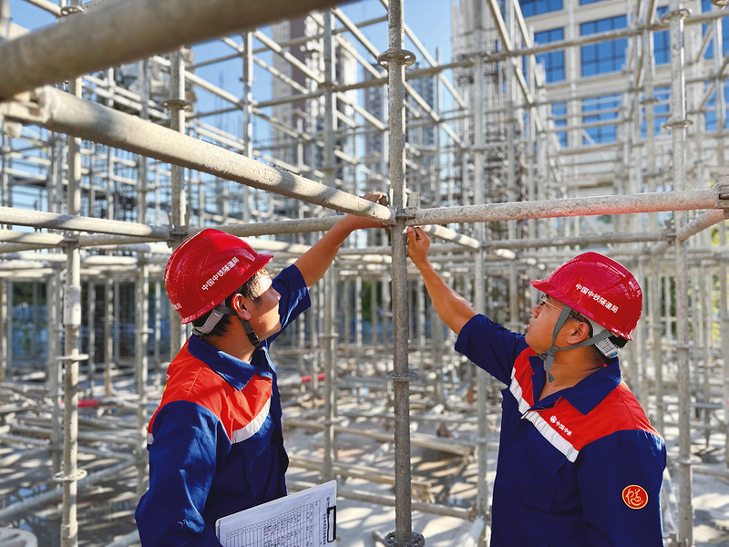 图②为四处新兴产业园二期项目部员工进行安全巡查。