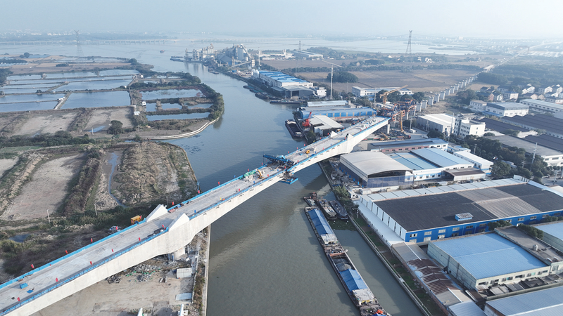 近日,由中铁隧道局承建的通苏嘉甬高铁江苏段首座最大跨度连续梁拱组合桥——苏南特大桥跨白蚬江连续梁拱组合桥主跨顺利合龙,打通了14千米的重要架桥机通道,标志着通苏嘉甬铁路建设取得关键胜利,为长三角南北向骨干通道、苏州“丰”字形国家干线铁路网的南北主动脉建设注入强劲动能。智能建造赋能高效施工