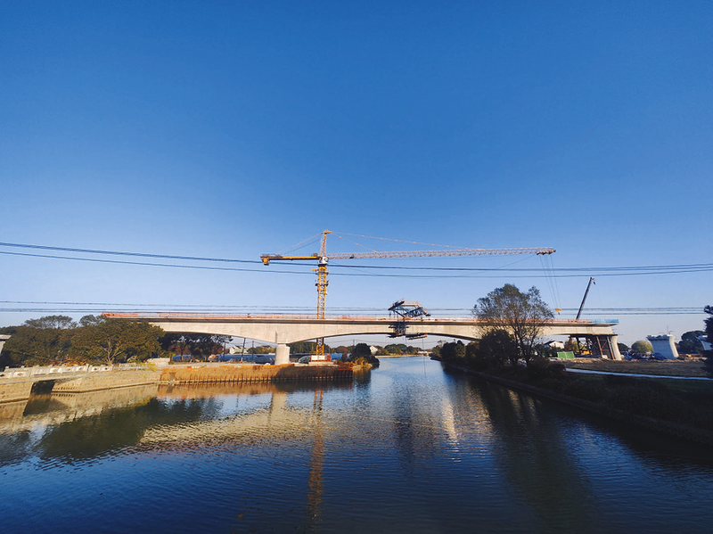 ▲12月15日,六处承建的通苏嘉甬铁路苏南特大桥跨中塘港连续梁顺利合龙。跨中塘港连续梁跨越中塘港河道,河道斜宽60米,整体采用(40+64+40)米连续梁设计跨越河道,采用挂篮辅助方式合龙。郑振群 罗星 摄影报道