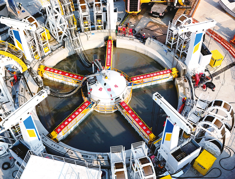 江苏太仓消息 1月13日,我国自主研制的世界最大直径竖井掘进机“启明号”在江苏太仓崇太长江隧道2号竖井始发,开创了我国高铁竖井采用全自动掘进机施工的新纪元,也为掘进突破万米的“领航号”盾构机后续“归队”筑牢基础。